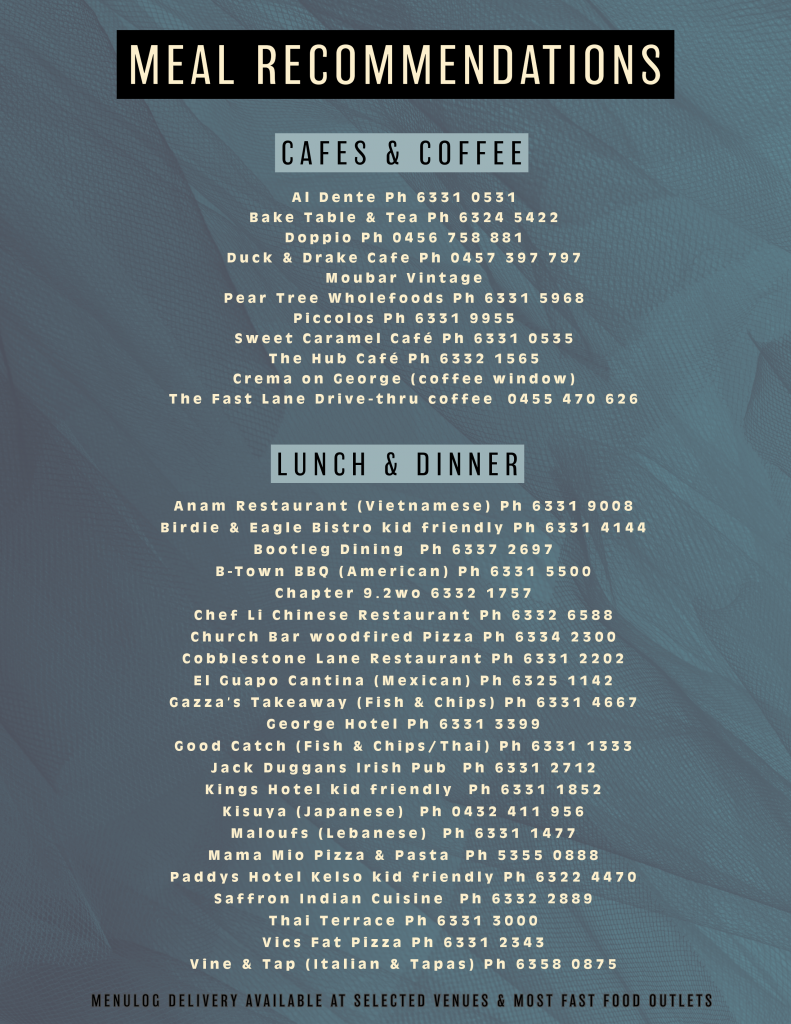 Some places offer takeaway or are available through Menulog for delivery. Our recommendations can be found below.